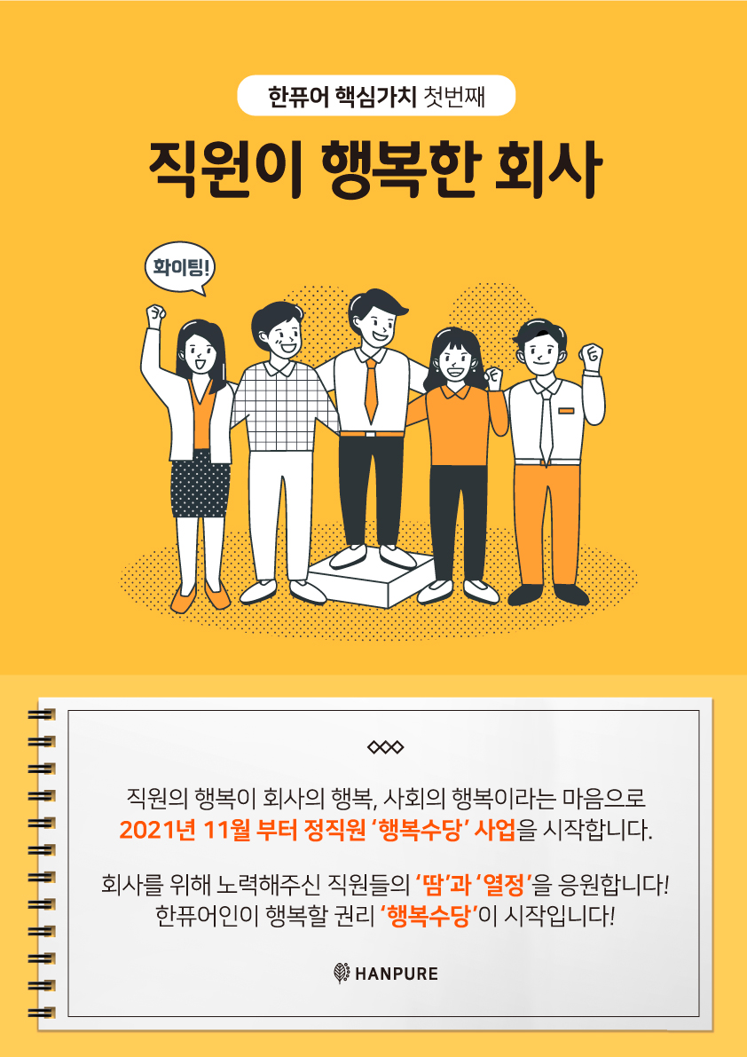 ○ 한퓨어 모든 직원들에게 매월 행복 수당 지급